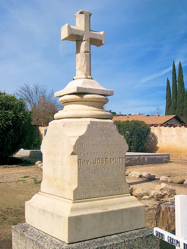 Fr. Mut’s tombstone in the cemetery at Mission San Miguel.